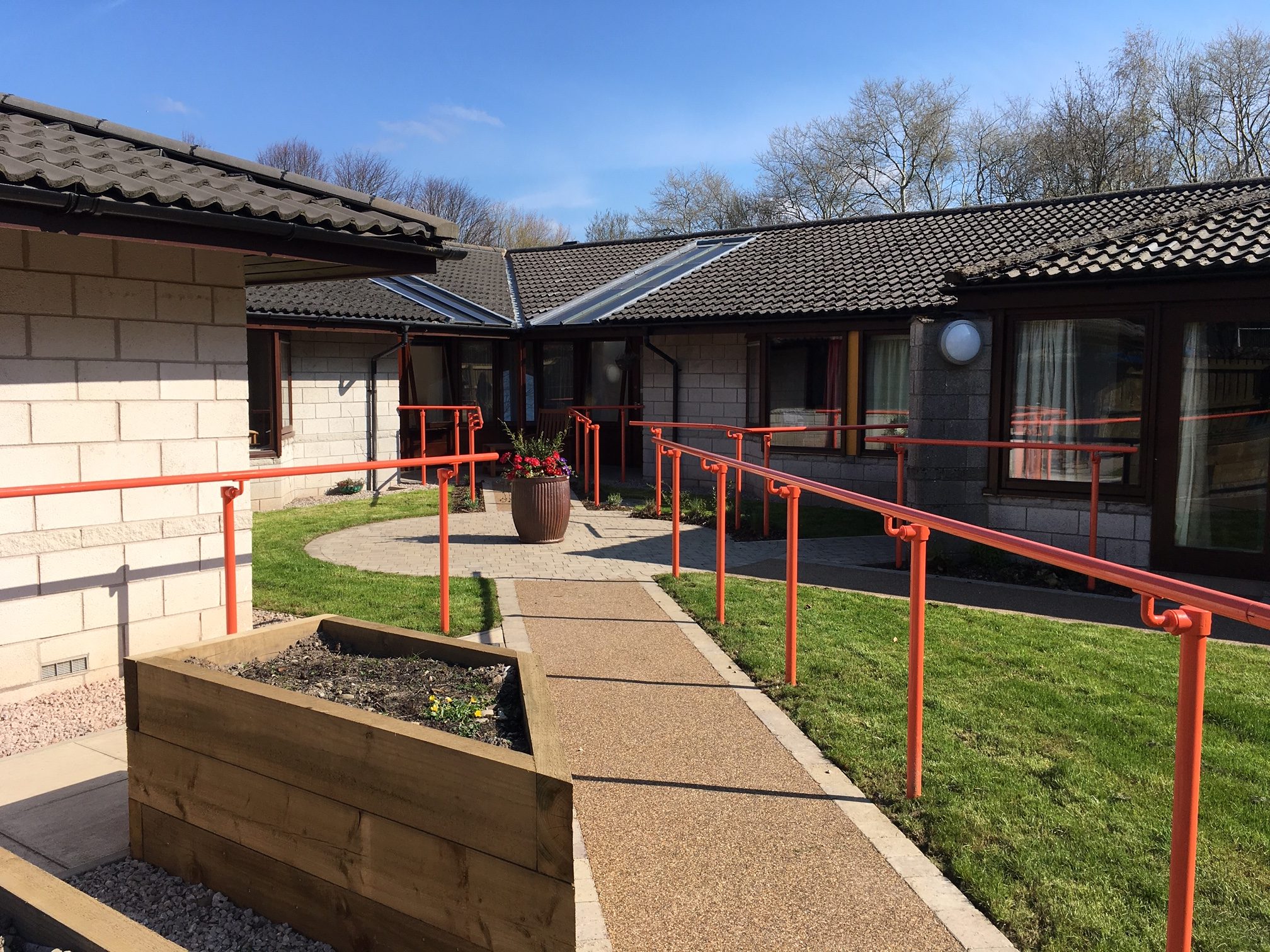 Westwood Landscape were commissioned by Cumbria County Council to design three courtyard sensory gardens at a care home suitable for residents with dementia to encourage more use of the grounds to promote health and wellbeing. Features included raised beds for gardening, sculptures, scented planting beds, green bowls and seating terraces.